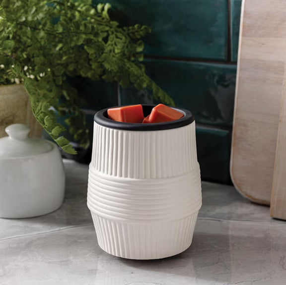 Bring effortless fragrance and modern style to your space with the Porcelain Ridges Flip Dish Wax Warmer. Designed with a soft white eggshell finish and elegant debossed ridges, this warmer blends seamlessly into any décor while making wax changes easier than ever.