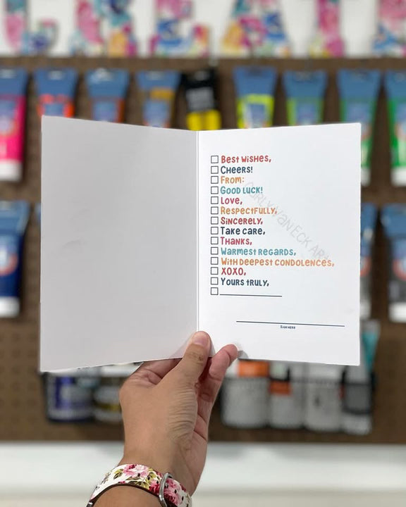 Named after our personal friend and artist, Carly Van Eck, this card is one you want to have on hand to pull out for last minute needs.