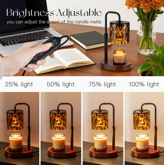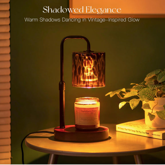 This elegant candle warming lamp combines sculptural design with functional fragrance control. Featuring a curved metal arm and a beautifully textured amber glass shade, it casts a warm, ambient glow while gently melting candles from the top down—releasing fragrance evenly without flame, smoke, or soot.